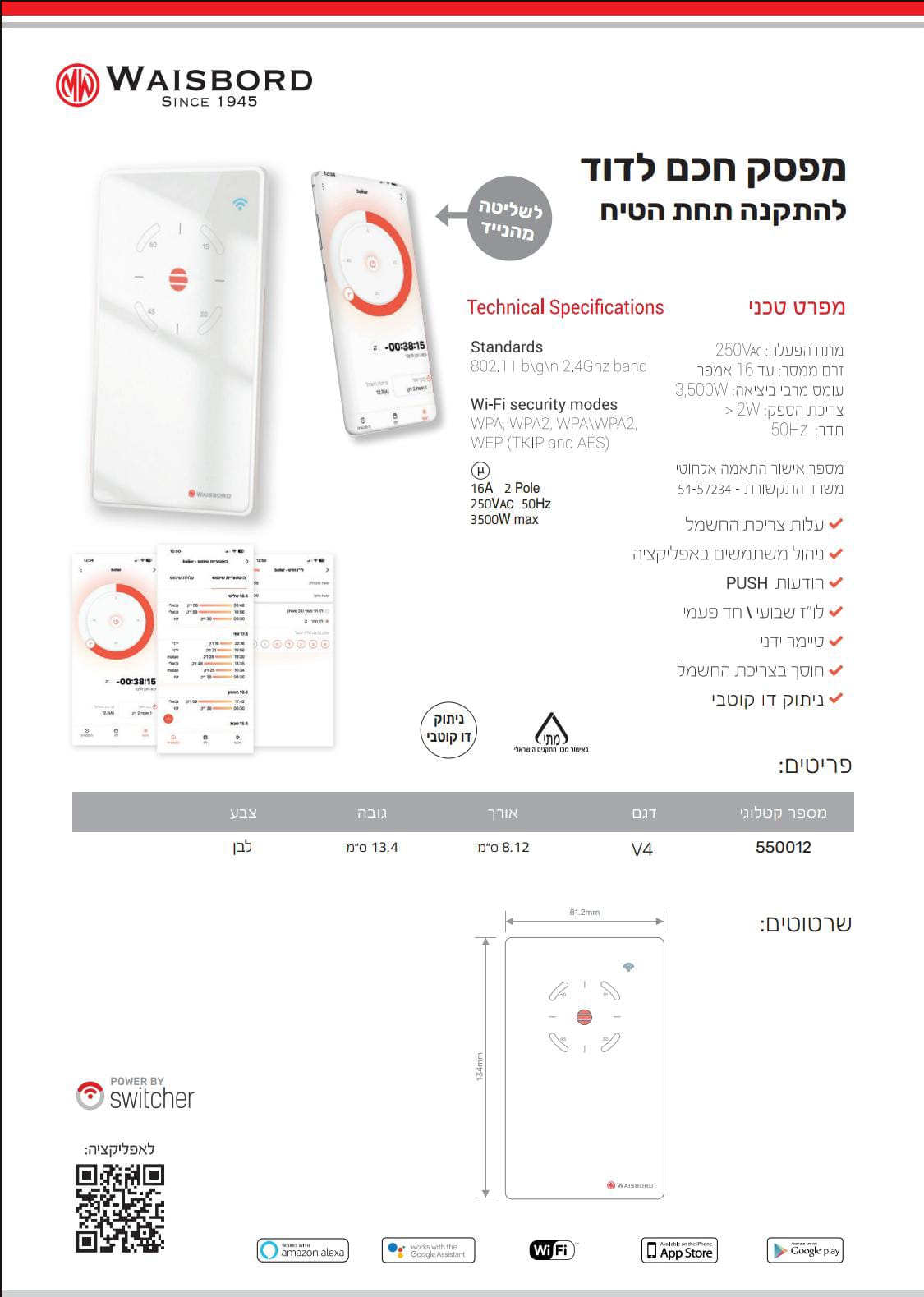 מתג / מפסק חכם לדוד וויסבורד מבית סוויצ׳ר לקופסא 55